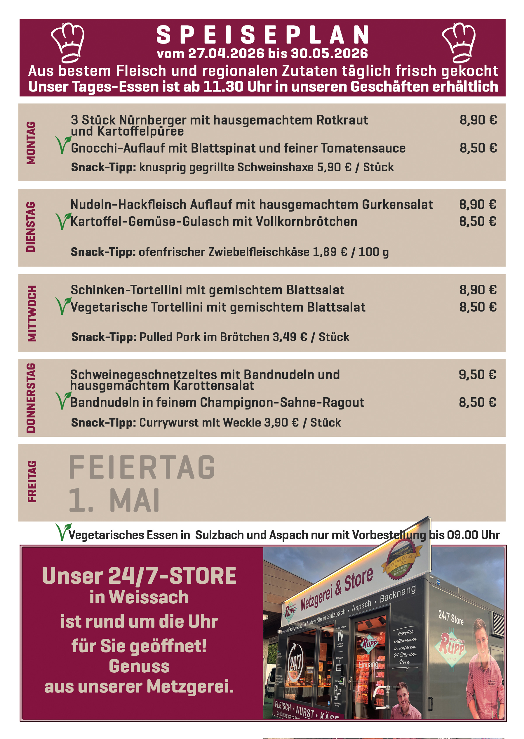 Neu: 24/7 Metzgerei & Store