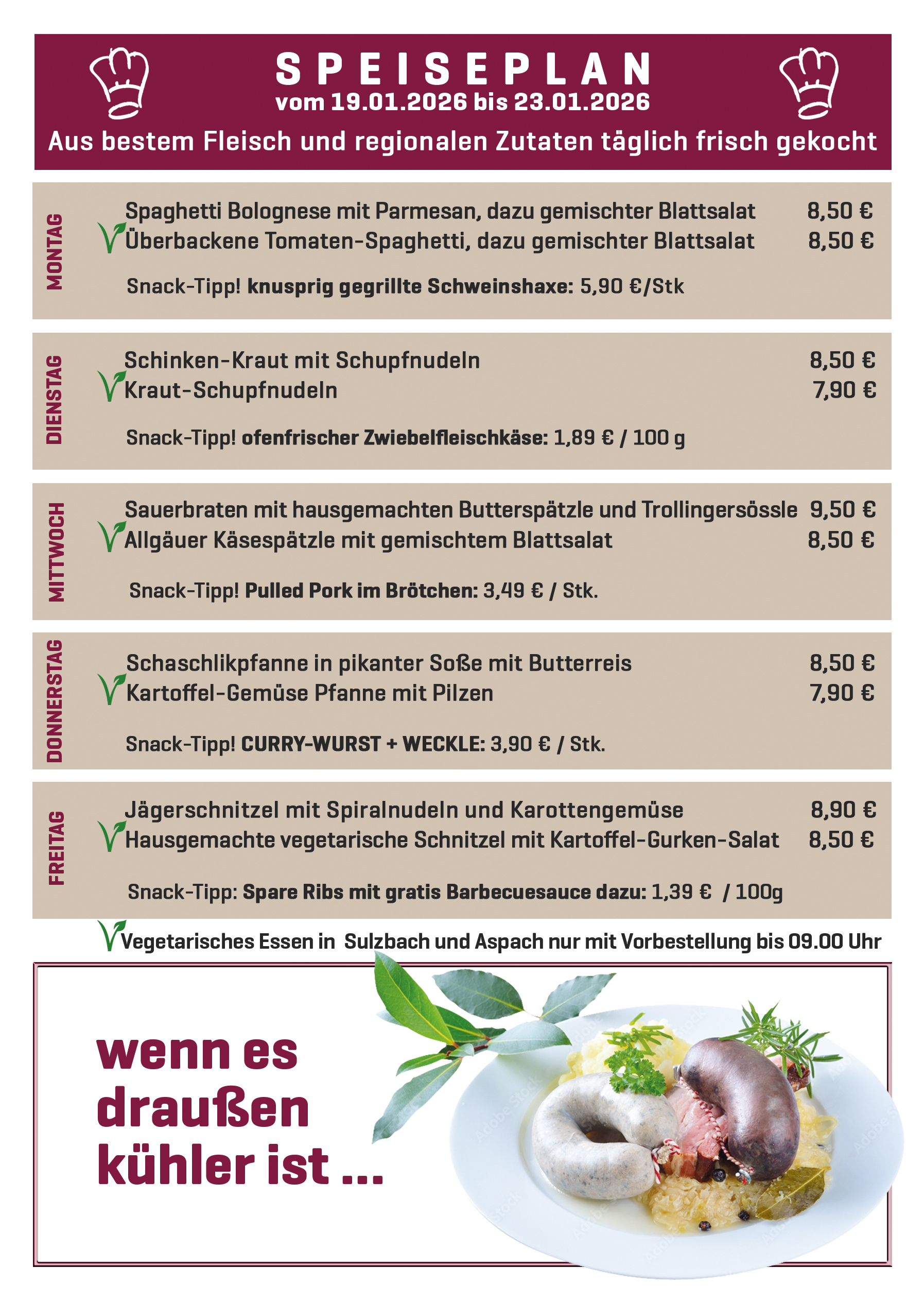 Im Fachgeschäft Sulzbach/Murr und Großaspach bitte um Vorbestellung bis 9.00 Uhr.